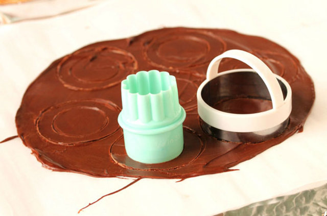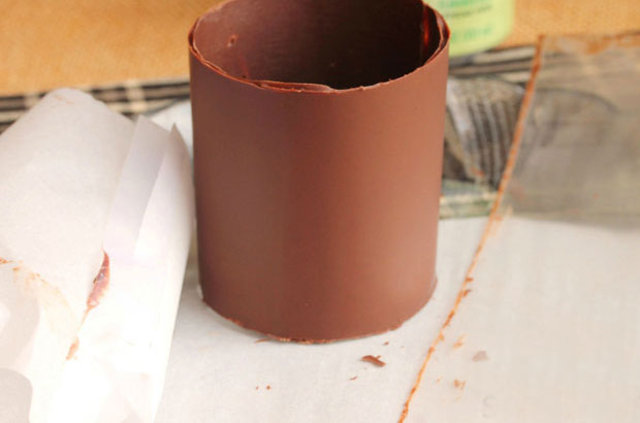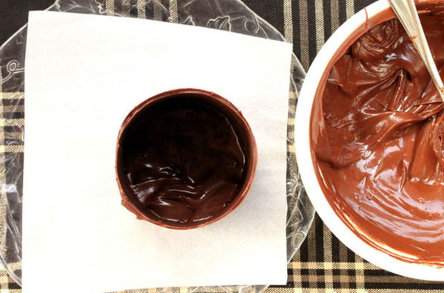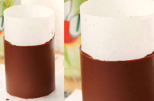 Bardağı bir yağlı kağıt üzerine koyun ve altını çikolata ile doldurun.