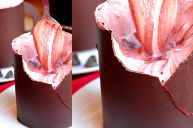 Dilerseniz içine dondurma, meyve vb tatlı atıştırmalıklarla süsleyebileceğiniz çikolata bardağınız hazır!