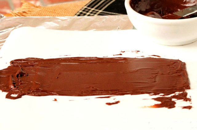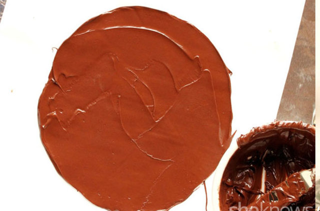 Ardından erimiş çikolatayı ölçüsünü aldığınız streç filmin üzerine yayın.