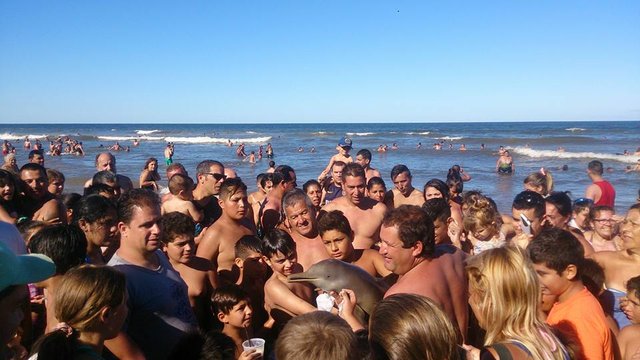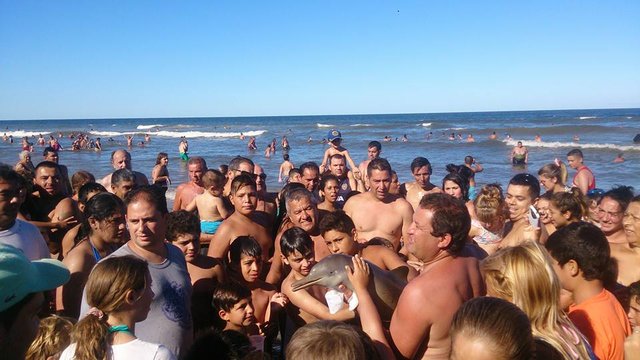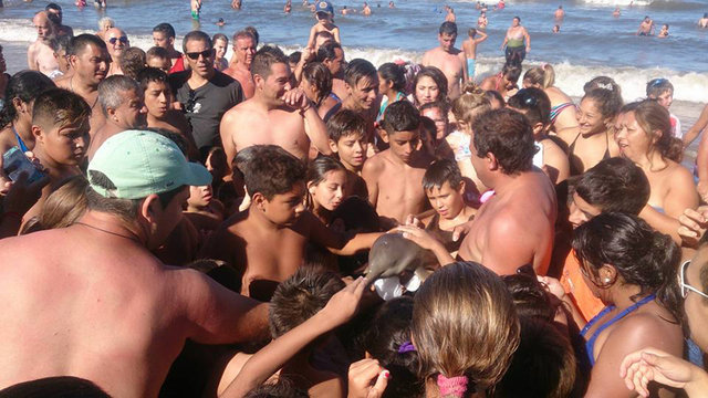Nesli tükenme tehlikesiyle karşı karşıya olan 'Franciscan' yunusunu turistler, elden ele dolaştırdı.