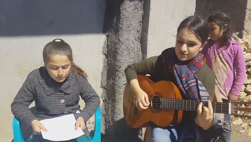 Diyarbakır'dan çatışmalar nedeniyle Mardin'in Derik İlçesi'ne giden Hatice, ilçedeki Göktaş Ortaokulu'nda misafir öğrenci. Hatice, okulda öğretmenlik yapan Boğaziçi Caz Korosu'nun eski solisti İpek Alkaç'la birlikte 'Mavi Gezegen' şarkısını söyledi