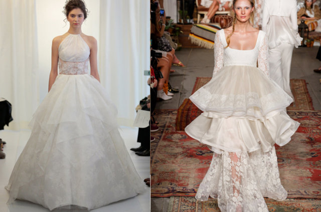 Oscar De La Renta koleksiyonunda da gördüğümüz katmanlı gelinlikler, bu sezonun en hit 5 trendi arasında.