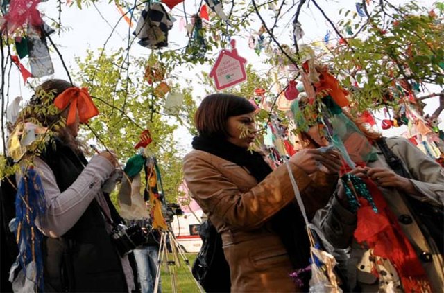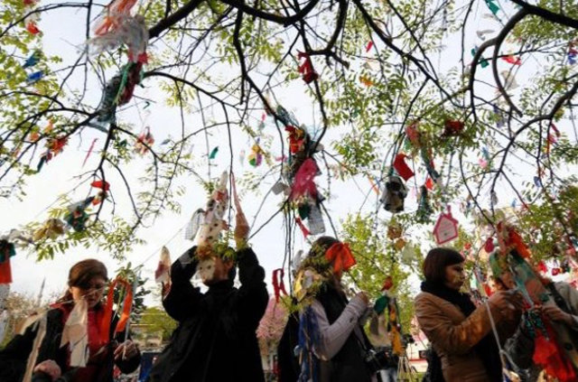 Hıdırellez dileklerini gül ağacının dalına bağlarken :
