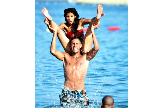 Bazı turistler deniz ortasında müzik eşliğinde dans ederek eğlendi.