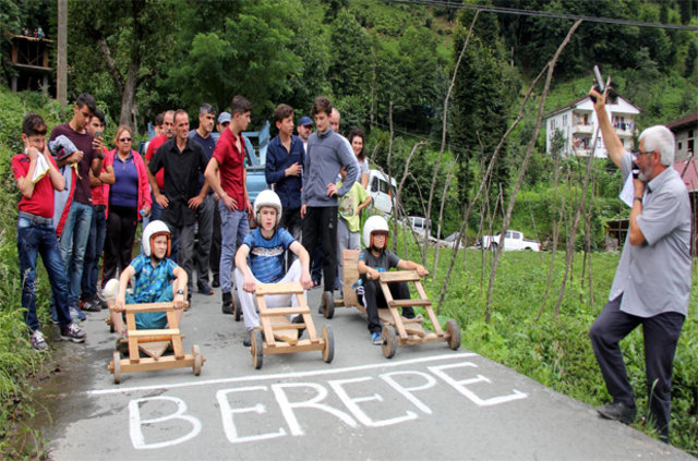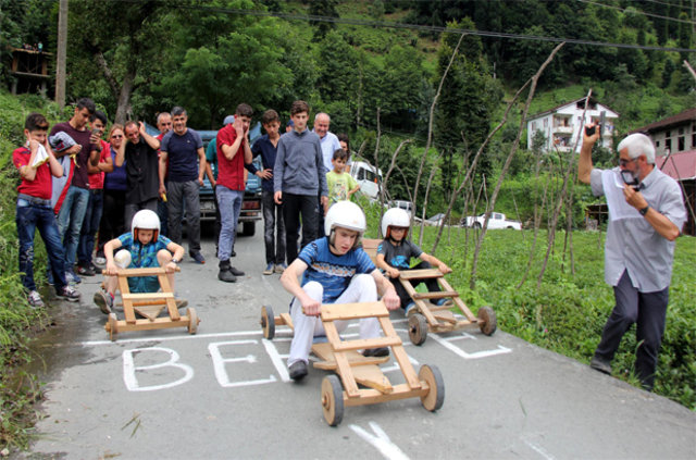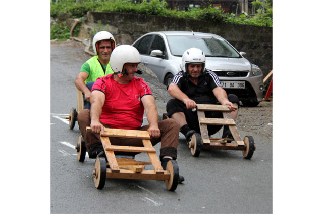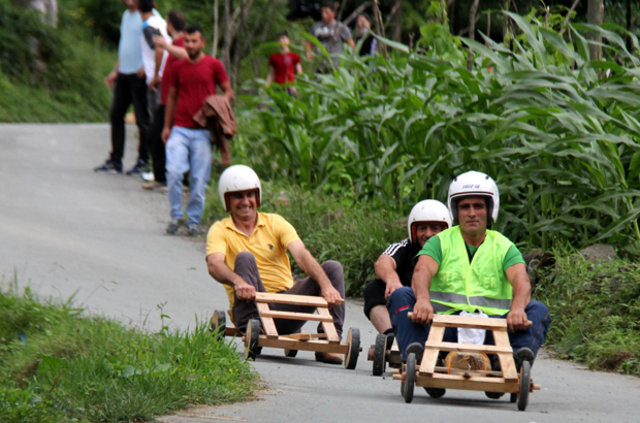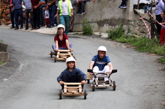 Rize'nin Çamlıhemşin ilçesi Dikkaya Köyü'nde, Ramazan Bayramı'nda, 'Laz Ralli' adı verilen tahta araba yarışları düzenlendi