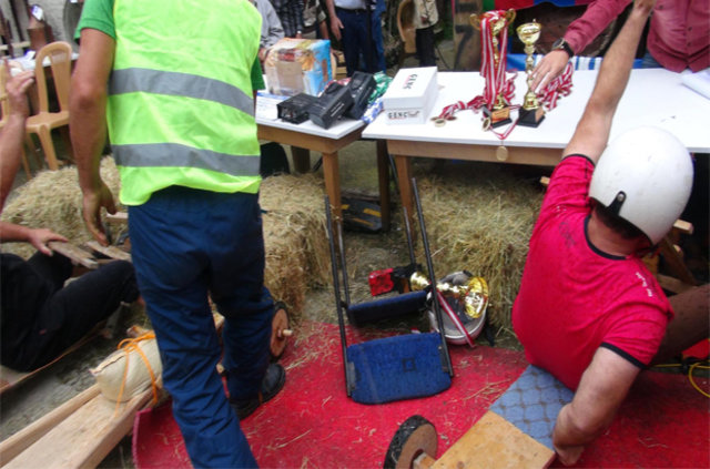 Görevlinin kuru sıkı tabanca ile başlattığı yarışlarda ahşap araçlar saatte 70 kilometre hıza ulaştı. El yapması tahta arabaların bazıları takla attı, bazıları ise hızını alamayarak önce saman balyalarına, ardından görevlilerin bulunduğu alandaki masalara çarptı.