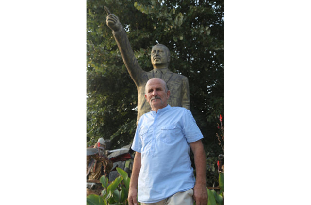 Biz heykeli bitirinceye kadar memleket karıştı darbe teşebbüsü oldu. Bundan da son derece üzgünüz. Bu heykel de bu olaylar sonrasında bende kaldı. Daha sonra ne arayan, ne soran oldu. Cumhurbaşkanımızın heykelini almadılar. Heykeli galerinin önüne koydum. Fakat fotoğraf çekilmeye gelenler, soru sormak için gelenler çok oluyor." DHA