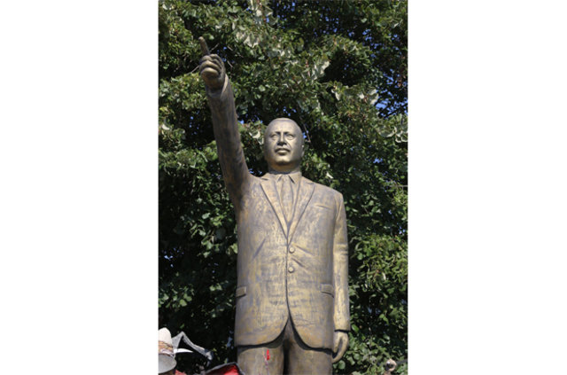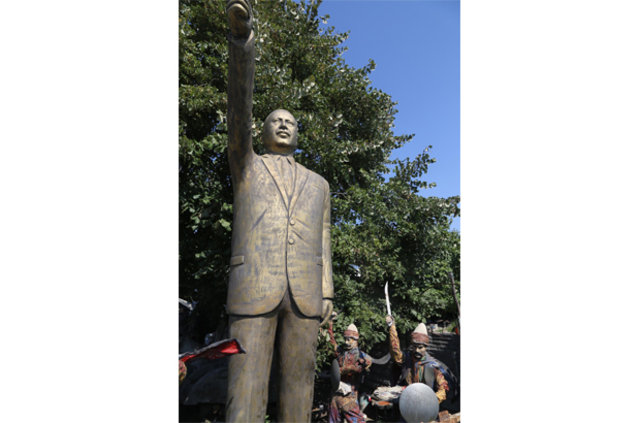 2 ton ağırlığında 4 metre yüksekliğindeki heykeli, darbe girişiminin ardından belediyenin almadığını belirten Nuh Açın, heykeli atölyesinin önünde sergilemeye başladı. Yoldan geçerken heykeli görenler durup, önünde hatıra fotoğrafı çektiriyor.