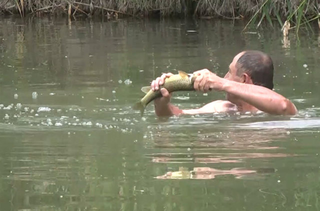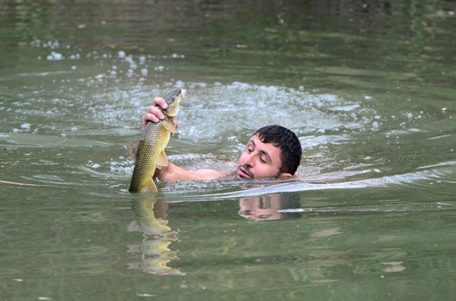 "Balığı elle yakalamak sabır gerektiren oldukça heyecanlı bir uğraş." diyen Teker, şöyle konuştu: "Bazen 7-8 kiloluk balığı elle yakalamak için büyük uğraş veriyorsunuz. Suyun altında balıkla boğuşma yaşıyorsunuz.