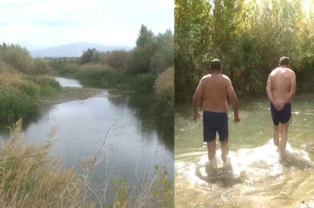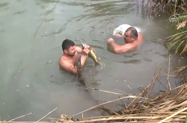 İki kardeşin elleriyle yaptığı balık avı, çevredekiler tarafından da şaşkınlıkla izleniyor.