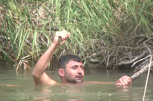 İki kardeş balıkları elleriyle avlıyorlar