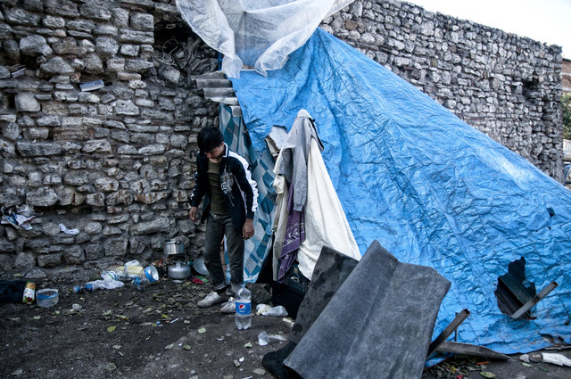 Bir yıl önce ülkelerindeki savaştan kaçarak kendilerini Türkiye'ye atan yedi arkadaş şu an boş bir arsaya kurdukları dördüncü kamplarında yaşıyorlar.