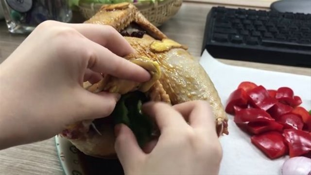 İşte sosyal medya fenomeninin ofiste tavuk pişirme anları.