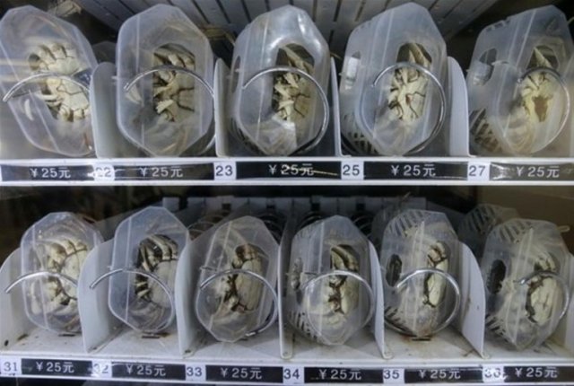 Canlı yengeç alınabilen otomatlar.