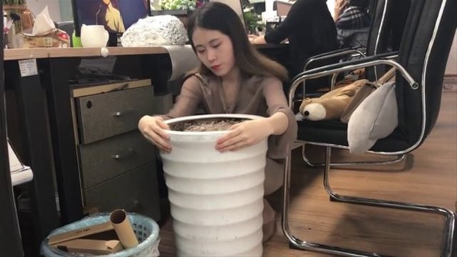 Ofis olduğu için fırın kullanmayan Youtube fenomeni, pişirme işlemi için saksı kullandı.