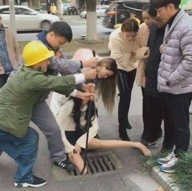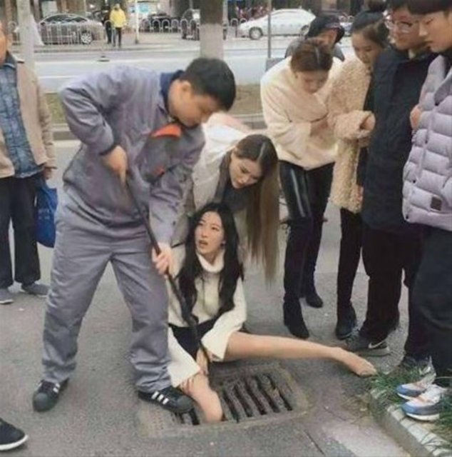 Çin'de telefonla konuşurken yolda yürüyen bir kadın rögar kapağına sıkıştı. Sağlık görevlileri olaya hemen müdahale ederken, ilginç anlar kameralara böyle yansıdı.