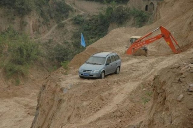 Bölgede faliyet gösteren inşaat firmasını protesto eden Çinli, inşaat alanına arabasını bırakıp gitti.