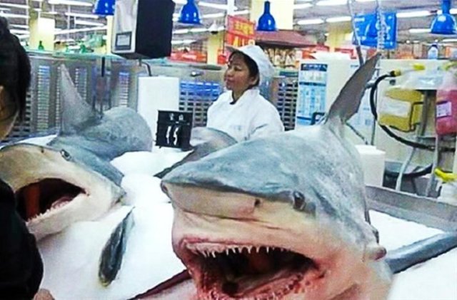 Süpermarketlerde satılan köpek balıkları.