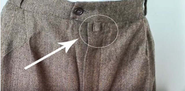 Eski pantolonlarda bulunan bu halkanın bir işlevi var aslında. Bu halkayı kemerin diline geçirdiğinizde pantolonun ön kısmının aşağı sarkmamasını sağlarsınız.