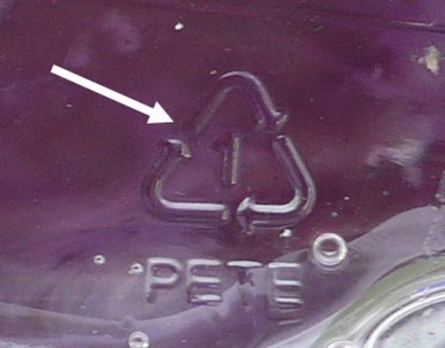 1'in anlamı, PET veya PETE polietilen demektir. Genelde su, iki litrelik alkolsüz içecekler ve yağların konduğu pet şişelerde kullanılır. Cam gibi şeffaftır, zararsızdır.