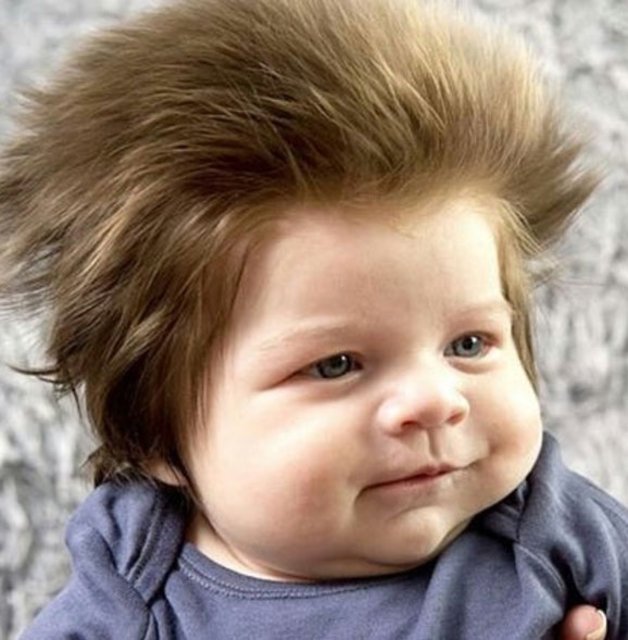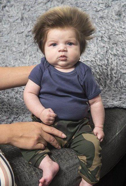 Dik saçlarıyla sevimli olan bebek büyüdü.