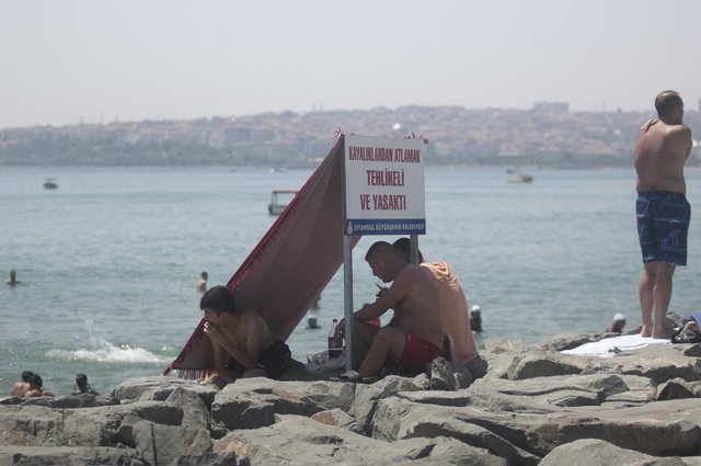 Ve üstelik bir plaj da değil. Yeşilköy denizi, büyükşehir belediyesince denize girilmesi sakıncalı görülmüş ve bu herkese ilan edilmiş yerler arasında.