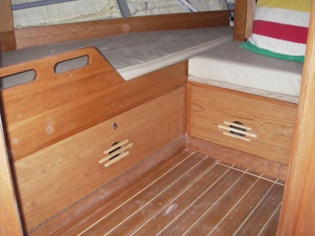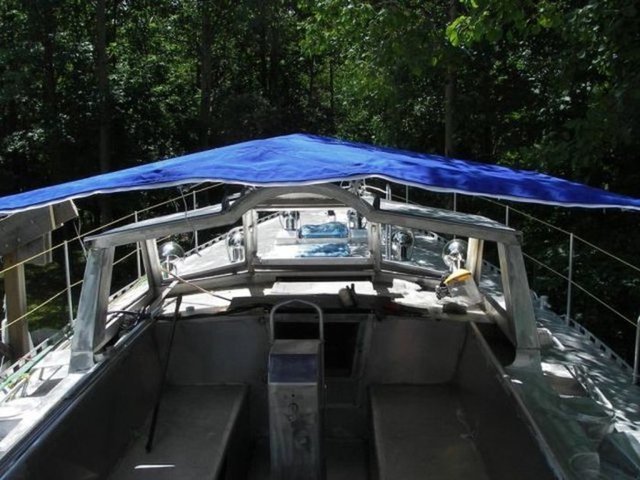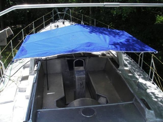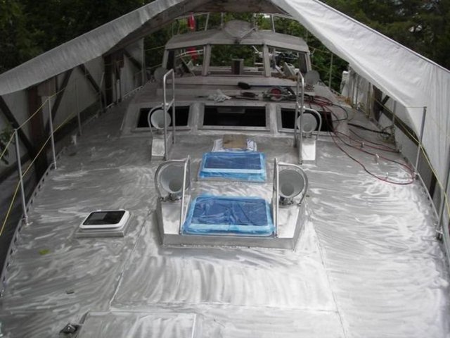 Yatın yapımında ahşap ve alüminyum kullanıldı.