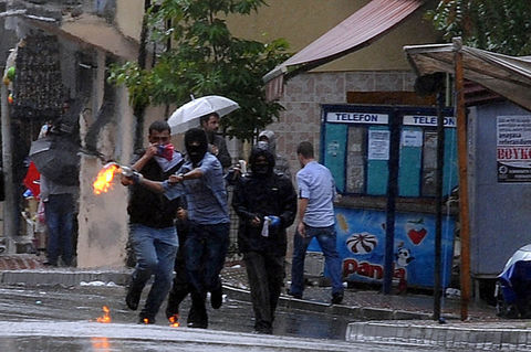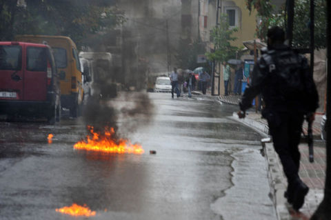 İsmetpaşa Caddesi üzerinde polise ve sokaklara molotofkokteyli atan grup, ortalığı birbirine kattı. Gazi Mahallesi'ndeki oy kullanılan bir okulun camlarını kıran grupla, polis arasında sıcak temas yaşandı. Polis, göstericilere biber gazı ve tazyikli suyla müdahale etti. Polis müdahalesinin ardından ara sokaklara kaçışan grup, ara ara tekrar caddeye çıkarak eyleme devam etti. Polis ve grup arasında zaman zaman kovalamaca yaşandı. Polise zor anlar yaşatan göstericiler, müdahalenin ardından ara sokaklara