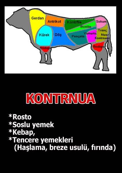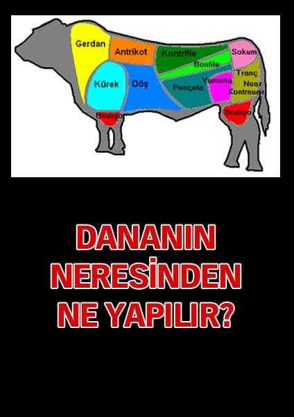 Dana eti kavurması: Dana etiyle kavurmayı yaparken, önce tencereye yağ konulur ve yağ eridikten sonra etler ilave edilir. Hiç bir şekilde etin kendi yağının dışında yağ ilave etmiyoruz. Yine dana kavurmanın içerisine bir adet bütün soğanı koyup, yüksek ateşte bir kaç dakika kavurduktan sonra, kuzu kavurmadan farklı olarak bir bardak su ilave edip, kısık ateşte bir saat pişiriyoruz. Kavurma piştikten sonra tuz, karabiber ve kekikle karıştırarak, pilavla servis yapılır. Etlerin, ilk aşamada kızgın ateşte kavrulmasının nedeni, kızgın ateşte kenarından kabuk bağlarsa et suyunu dışarı ve böylece sert olmaz, daha yumuşak ve daha lezzetli olur. Baharat olarak sadece tuz, karabiber ve dağ kekiği kullanılır. Et yemeklerinde tuzun servise yakın atılmasının nedeni ise etin sertleşmemesidir.''