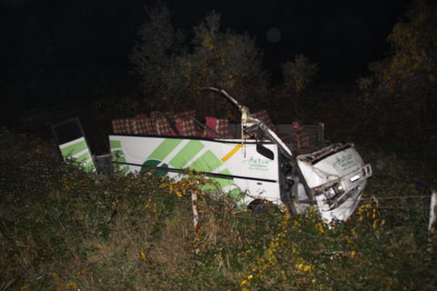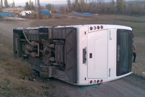 Erzurum istikametinden Ağrı istikametine giden yolcu otobüsü Pasinler ilçesi Gözeler mevkiinde şoförün direksiyon hakimiyetini kaybetmesi sonucu yan yattı.