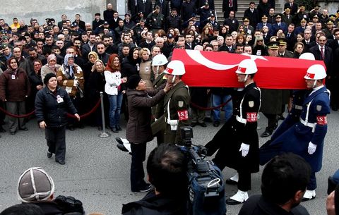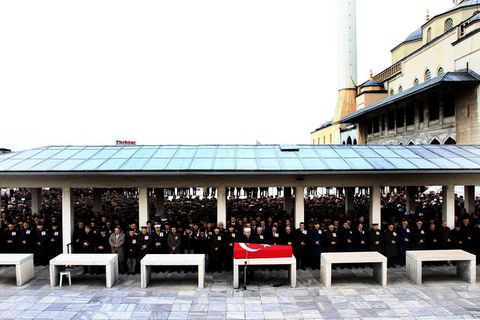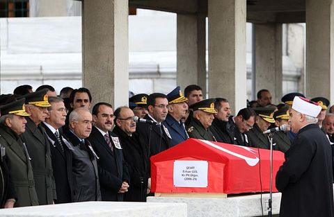 Eğitim uçuşu sırasında Ankara'nın Tuluntaş köyü yakınına düşen askeri helikopterde şehit olan Kara Pilot Üsteğmen Erhan Gül için Kocatepe Camii'nde tören düzenlendi.