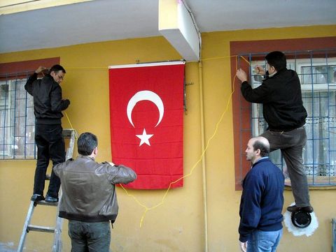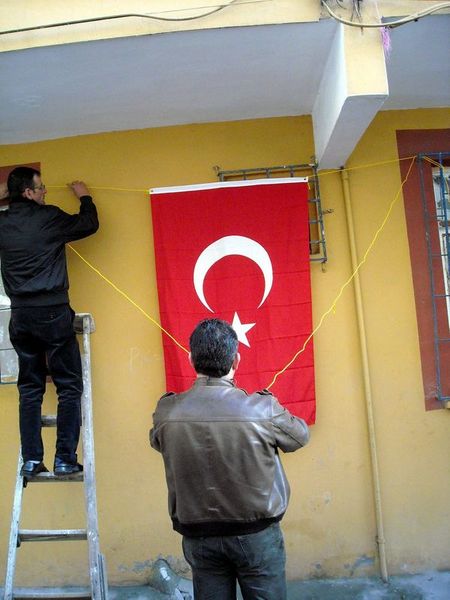 Taşçı'nın ailesinin oturduğu Güngören'deki 3 katlı binanın tüm katlarının pencere ve balkonlarına, sokağa ve çevredeki evlerin camlarına Türk bayrakları asıldı.
