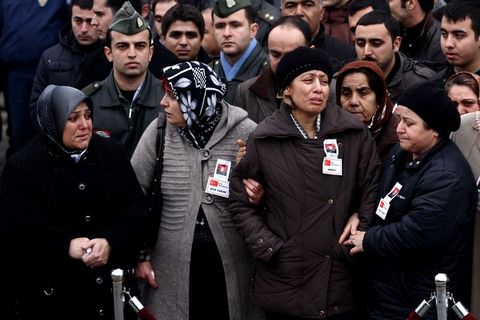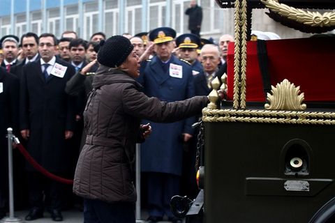 Anne Feraye Gül, Cebeci Şehitliğine götürülmek üzere törenin ardından cenaze aracına konulan oğlunun naaşının ardından bir süre koştu.