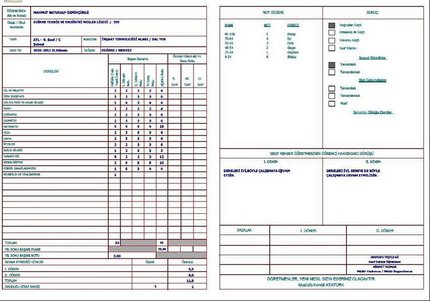 Mahmut Baturalp Ö.'nün karnesindeki notlarının, Dil ve anlatım: 2, Türkçe edebiyatı: 3, din kültürü ve ahlak bilgisi: 4, tarih: 2, coğrafya: 3, geometri: 3, matematik: 4, fizik: 3, kimya: 3, biyoloji: 3, sağlık bilgisi: 3, yabancı dil: 2, beden eğitimi: 5, görsel sanatlar (müzik): 4