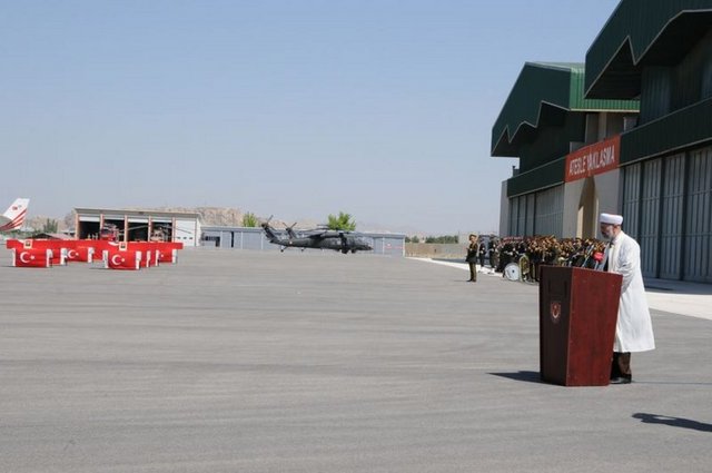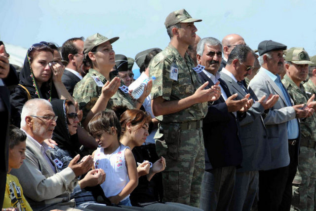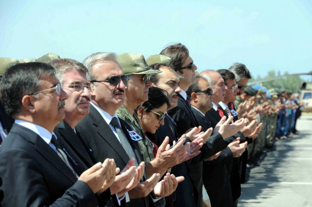 Daha sonra Van İl Müftüsü Nimetullah Arvas dua okudu. Törene katılan şehit yakınları, duygulu anlar yaşadı. Zaman zaman gözyaşlarını tutamayan ve fenalaşan şehit yakınlarına, tören alanında hazır bekletilen sağlık ekipleri müdahalede bulundu. Duaların okunmasının ardından şehitlerin Türk Bayrağı'na sarılı naaşları, askerlerin omzunda uçaklara taşındı ve memleketlerine uğurlandı.