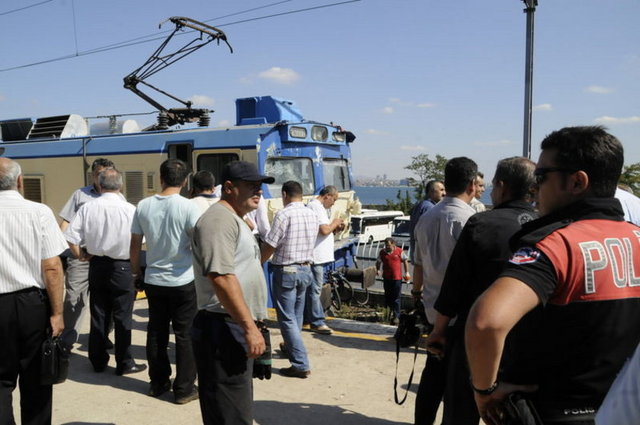 Kaza nedeniyle Sirkeci-Halkalı tren seferleri tek yönlü olarak yapılırken, kaza bölgesi güvenlik şeridiyle kapatıldı.