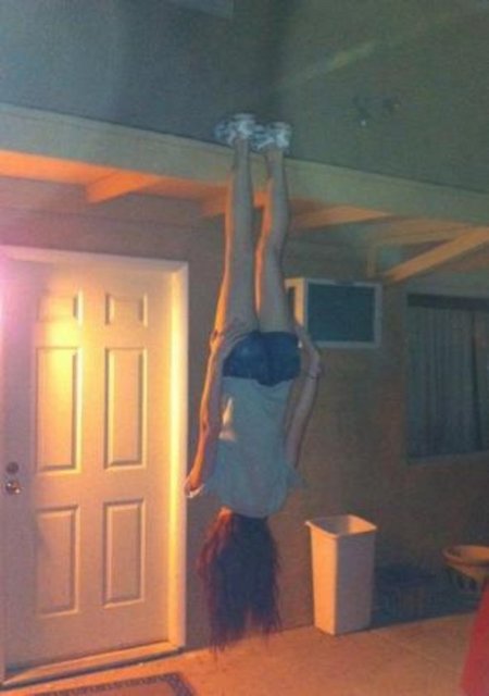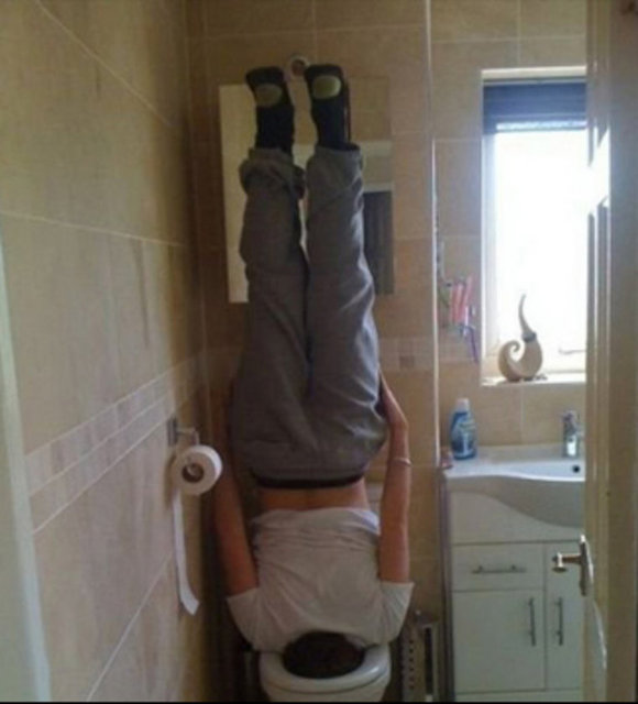 Planking (yüzüstü uzanma), owling (baykuş gibi tüneme), batmaning (yarasa gibi baş aşağı durma) akımına bir yenisi eklendi: Plumbking!