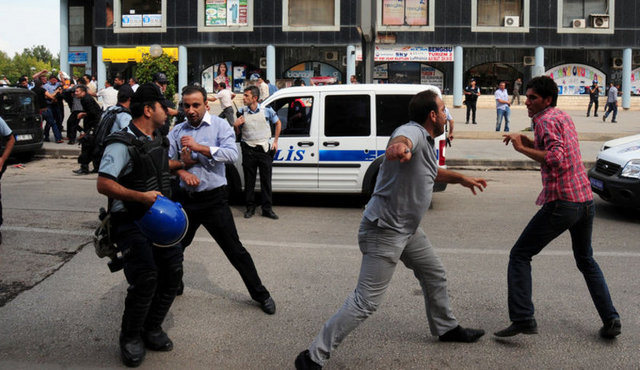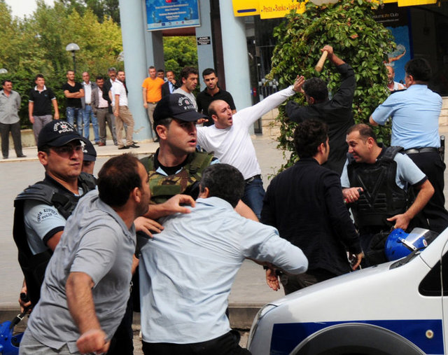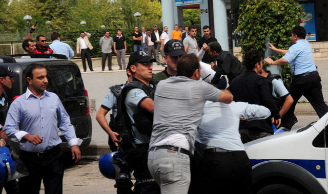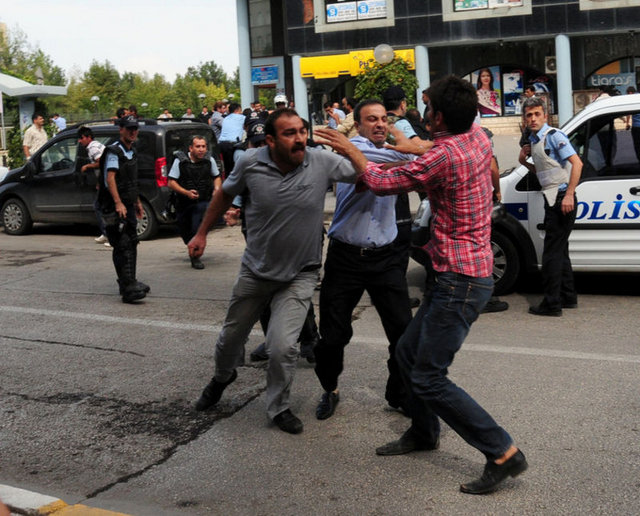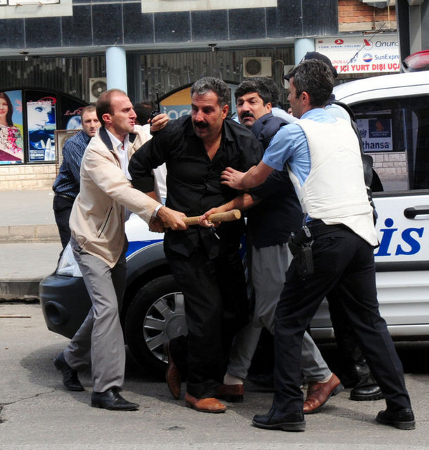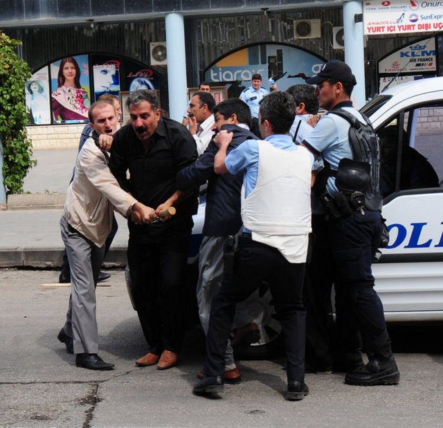 Tapu müdürlüğünün faaliyet gösterdiği alışveriş merkezinin içinde silahlar sıkılırken, zırhlı araçlarla olay yerine gelen polis, iş merkezi içinde havaya ateş açarak kavgayı yatıştırmaya çalıştı. Çevik Kuvvet ekiplerinin biber gazlı müdahalesiyle taraflar güçlükle ayrıldı. Olayla ilgili 10 kişi gözaltına alındı.