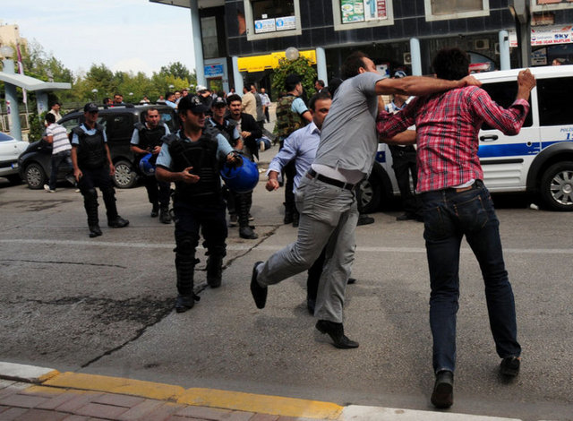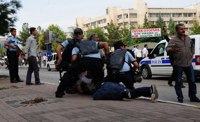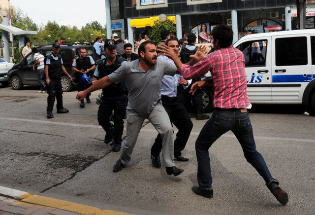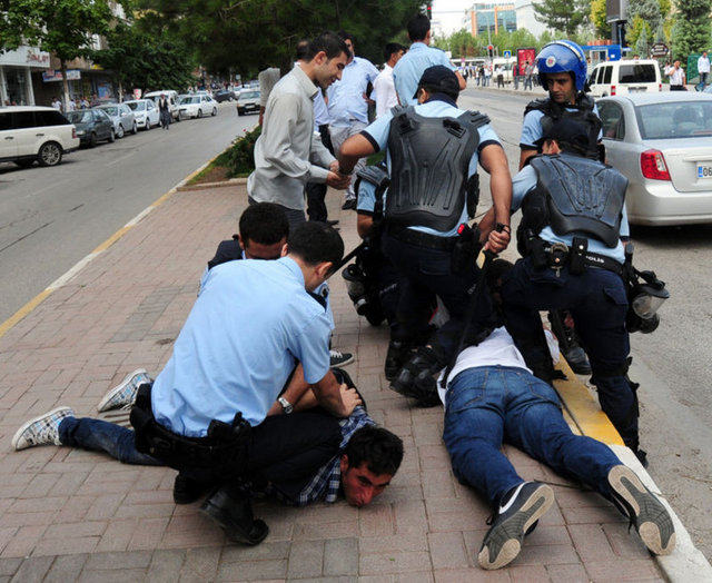 Kısa sürede tarafların başka yakınlarının da kavganın olduğu alana gelmesi üzerine yeniden gerginlik çıktı. Döner bıçaklarıyla birbirine saldıran tarafları çevik kuvvet ekipleri, biber gazı kullanarak ayırdı. Olayla ilgili her iki taraftan 10 kişi gözaltına alınırken, kavgada yaralananlar Diyarbakır Araştırma Hastanesi ile Dicle Üniversitesi Tıp Fakültesi Hastanesi'ne kaldırıldı. Polis, tarafların ikamet ettiği Üçkuyu Köyü Mahallesi'nde de geniş güvenlik önlemleri aldı.