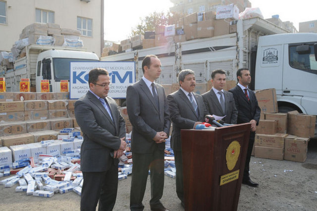 PKK'nın insan sağlığını tehlikeye sokan sigara kaçakçılığından 'vergi' adı altında pay aldığını söyleyen Diyarbakır Emniyet Müdür Yardımcısı İlyas Burunak, "Yasadışı yöntemlerle gümrük kaçağı sigaraları sınır ülkelerden yurdumuza getiren, naklederek pazarlayan şahıslara yönelik 2010 yılında yapılan 573 operasyonlarda 6 milyon TL değerinde 1 milyon 501 paket sigara yakaladık. 2011 yılının 6 Aralık itibariyle ise piyasa değeri 12 milyon TL olan farklı markalara ait 3 milyon 84 bin paket gümrük kaçağı sigara ele geçirildi. Son 2 yıldaki operasyonlarda yakalanan bin 281 kişi gözaltına alınmış, bunlardan sadece 12'si tutuklanmıştır. Ayrıca kaçak sigara ticareti ülke ekonomisine milyonlarca lira vergi kaybına sebep olmaktadır. Başta bölücü terör örgütü olmak üzere yasa dışı suç şebekeleri kaçakçılık suçlarından mali kaynak sağlayıp, kaçakçılık yapan şahıslardan vergi adı altında para toplamaktadır. Diyarbakır polisi olarak suç ve suçlularla mücadelemiz kararlılıkla devam edecektir" dedi.