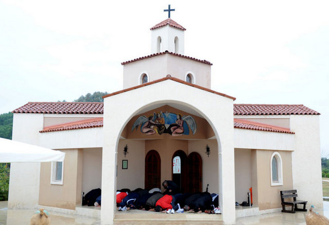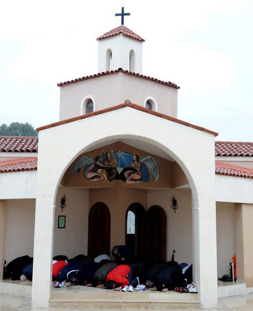 Antalya'nın Serik ilçesine bağlı Belek beldesinde 3 dinin ibadethanesinin bulunduğu Dinler Bahçesi'ne cuma namazı için gelen cemaat camiye sığmayınca namazını kilisede kıldı.
