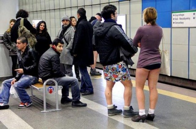 2002 yılından bu yana başta New York olmak üzere dünyanın birçok kentinde "Metroda Pantolonsuz Yolculuk" eylemi düzenleyen “Improv Everywhere” adlı grup bu yıl İstanbul'da da boy gösterdi.