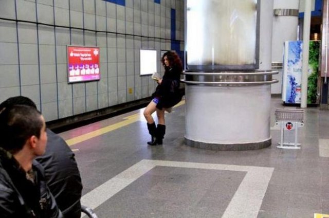 Metrodaki şaşkın bakışlara ise şu cevapların verilmesi istendi: “Bugün pantolonumu evde unuttum”, “Giymeye fırsat bulamadım”, “Pantolonuma kahve döküldü”.