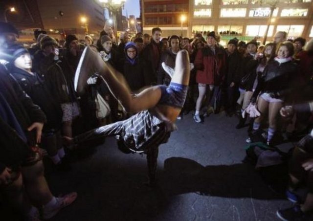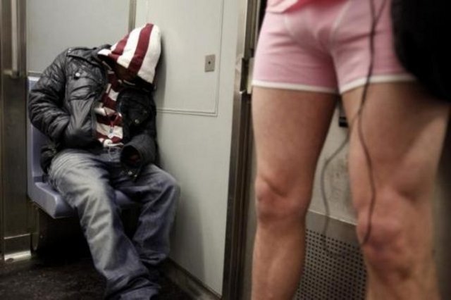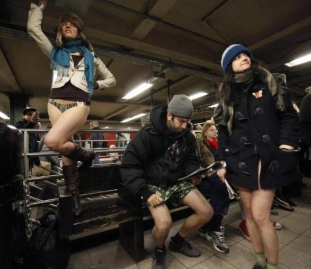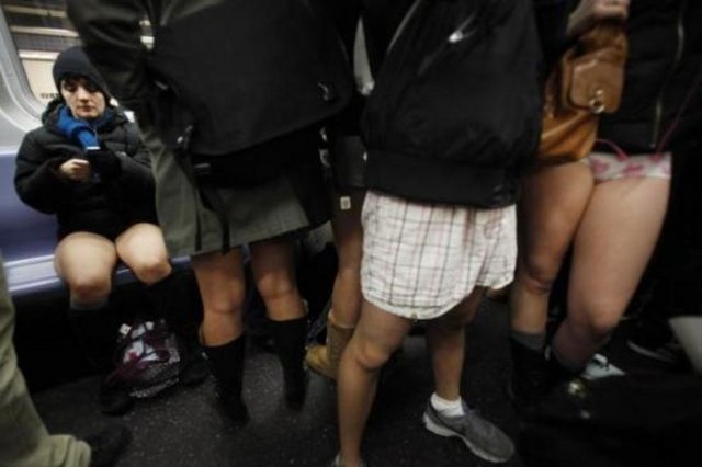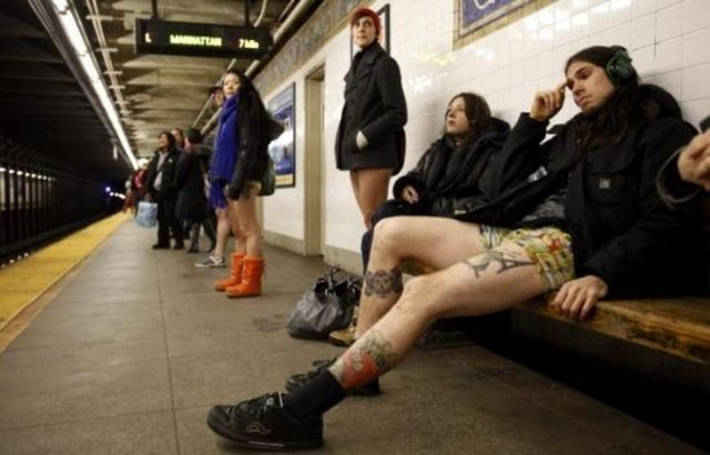 “Improv Everywhere” adlı grup, New York'taki eylemlerini 2010 yılında bir adım daha ileri taşımış ve metroya binen kadınlı erkekli yaklaşık bin kişi iç çamaşırlarını da çıkarmıştı.