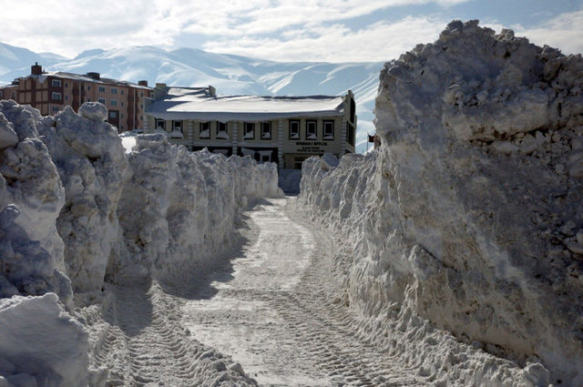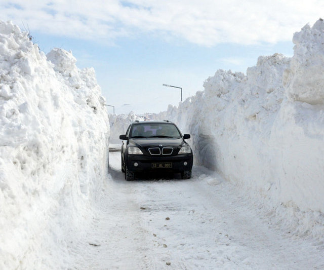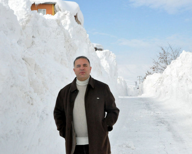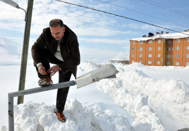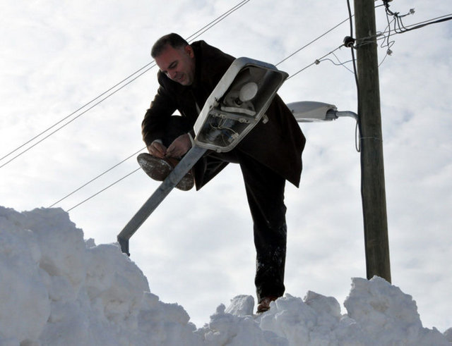 Bitlis Belediye Başkanı Fehmi Alaydın, karın yüksekliğini gösterebilmek için Bitlis-Tatvan Karayolu üzerindeki Rahva’daki TOKİ konutlarının bulunduğu bölgede bir sokak lambasının üzerinde ayakkabısının bağcıklarını bağladı.