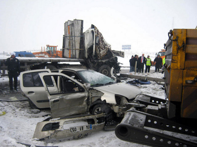 Kar yüzünden 60'a yakın araç zincirleme kaza yaptı!