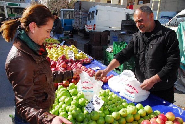 Pazarcı Ali Selim, hiç beklemeden tezgahında yeni simgeyi kullandığını söyledi. Gelip gören pazar müşterisinin sadece baktığını, tepki göstermediğini söyleyen Ali Selim, simgenin bir yenilik olduğunu ve güzel bulduğunu ifade etti. Selim, "Simge gayet güzel. İlgi çekici" dedi.