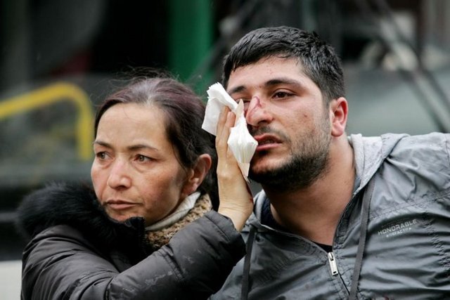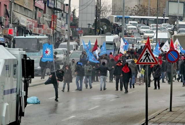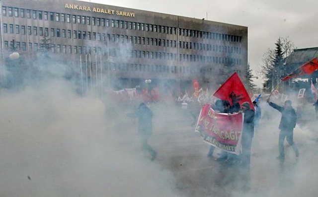 Adliye önünde bekleyen binlerce vatandaş ile polis arasında gerginlik yaşandı. Polis, vatandaşlara gaz bombası ile müdahale etti. Göstericilerin polise attığı taşlar nedeniyle yaralananlar oldu.