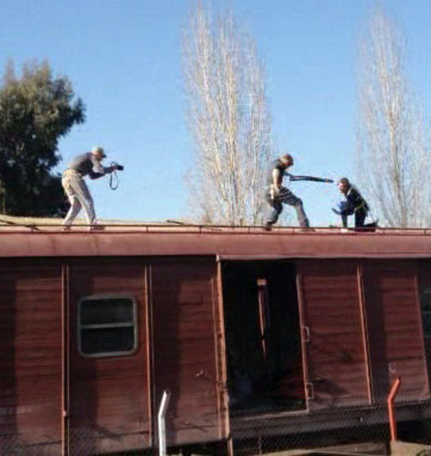 Ara sokaklardan güvenlik görevlilerine görünmeden gizlice tel örgüleri aşıp, vagonların altından geçen İbrahim Ali Özden ve arkadaşları, lokomotif tamirhanesine ulaştı. Hafta sonu olduğu için çalışma yapılmayan tamirhanedeki işçi kıyafetleri ve kaskları giyen İbrahim Ali Özden ve arkadaşları vagonların altından geçerek film setine vardı.