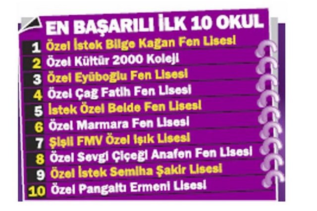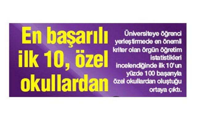 ■ En başarılı ilk 50 liseden 20'si fen lisesi olmak üzere 48'i özel okullardan oluştu.